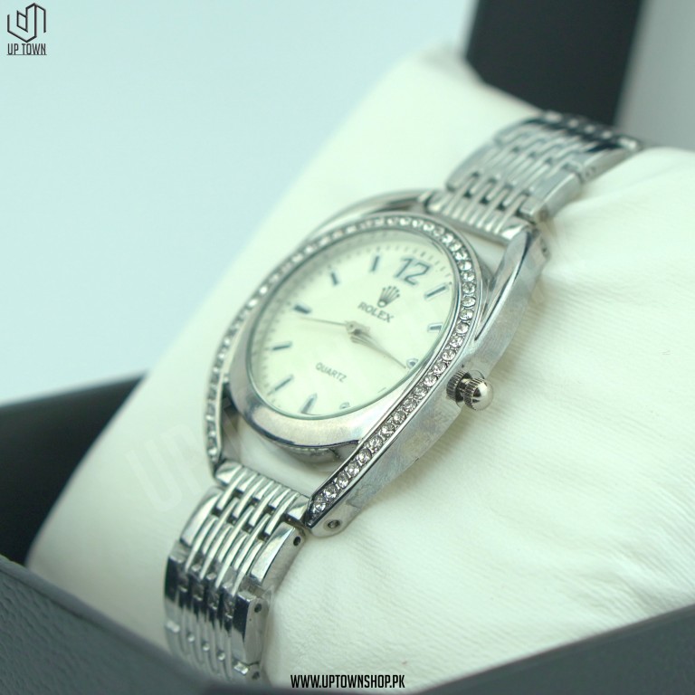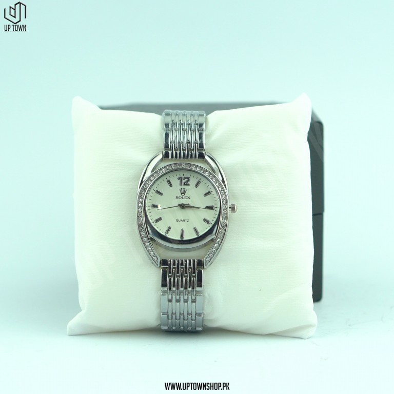 Elegant Sparkle: Fashion Diamond Dial Ladies Silver Chain Watch. Elevate Your Style with Dazzling Charm. Experience the Fusion of Silver Elegance and Diamond Sparkle