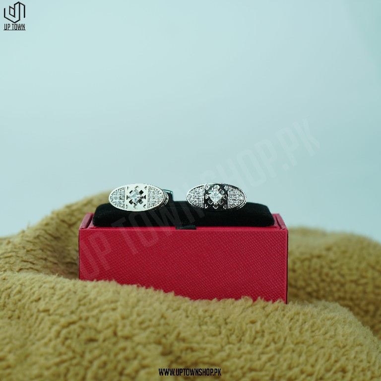 Silver Diamond King Style Men Cufflinks for Shirts & Suit